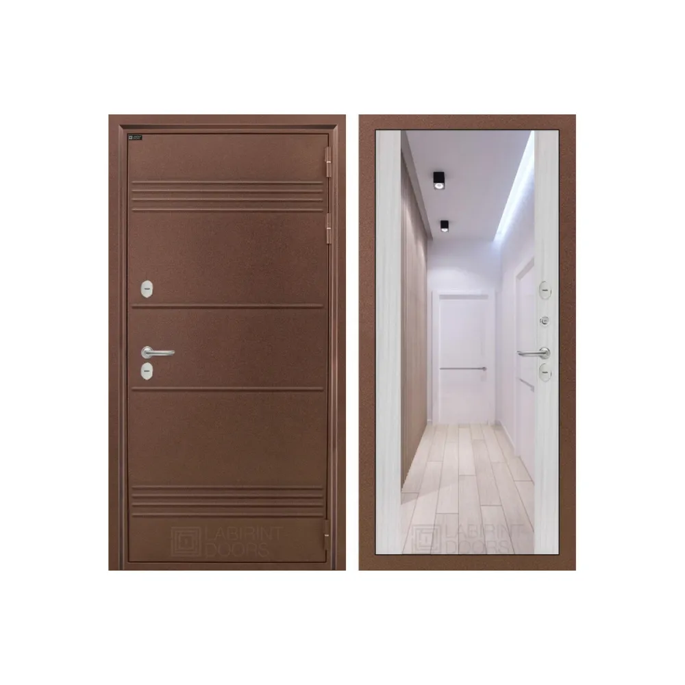 Входная дверь с терморазрывом Лабиринт Термо Лайт с Зеркалом Максимум - Сандал белый