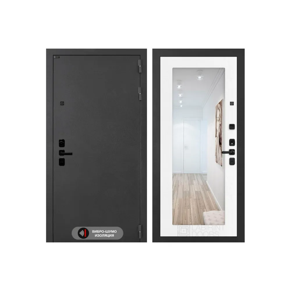 Входная металлическая дверь Лабиринт ACUSTIC с Зеркалом 18 - Белое дерево