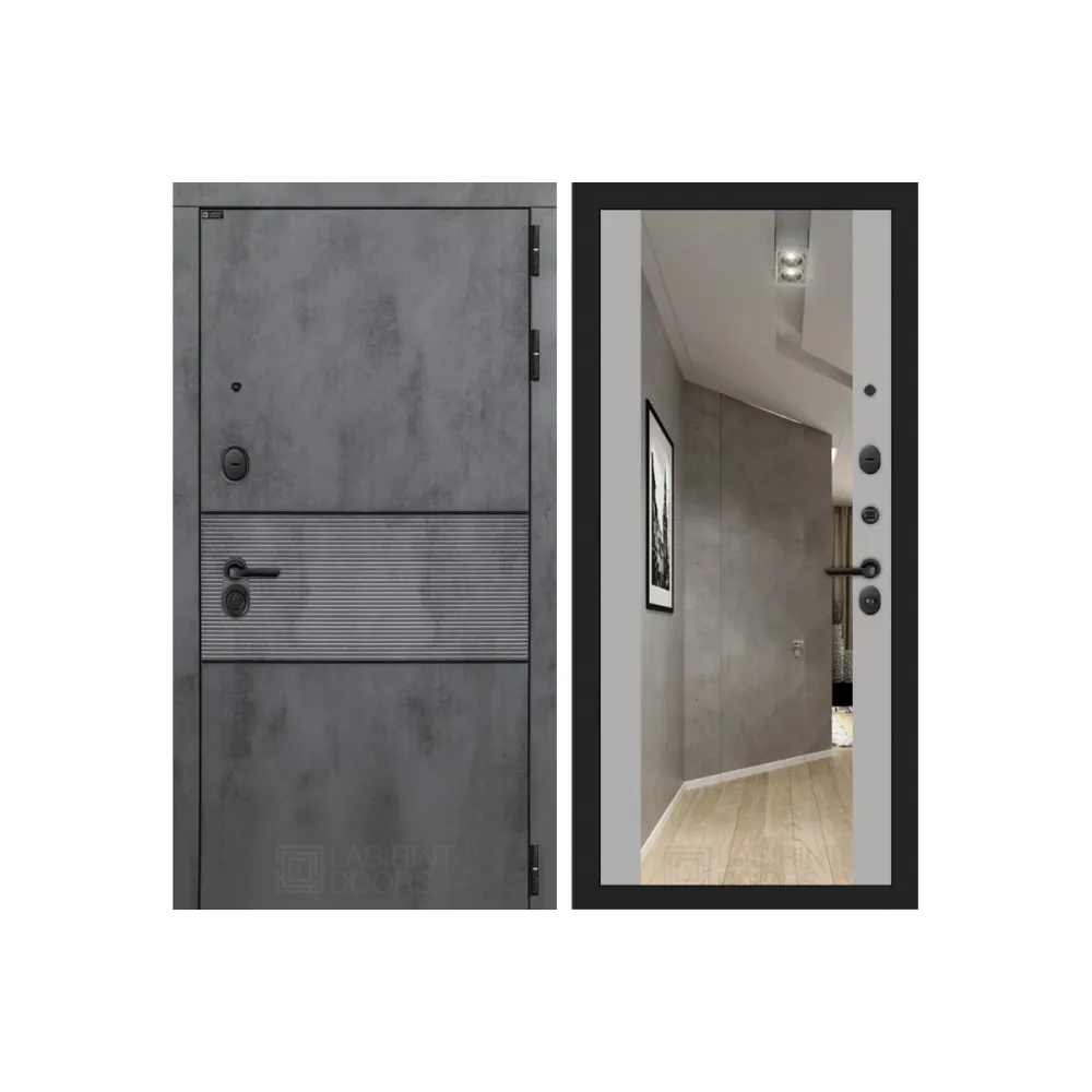 Входная металлическая дверь Лабиринт INFINITY с Зеркалом Максимум - Грей софт