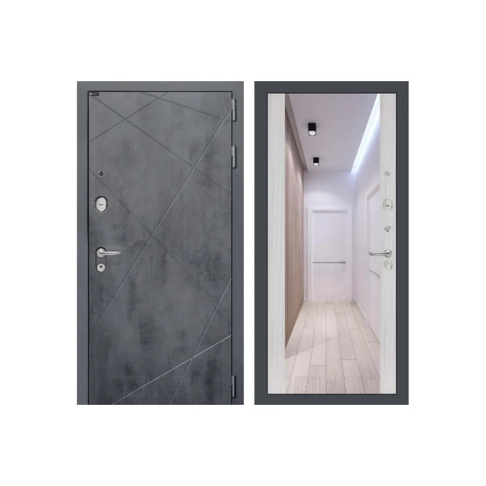 Входная металлическая дверь Лабиринт LOFT с Зеркалом Максимум - Сандал белый