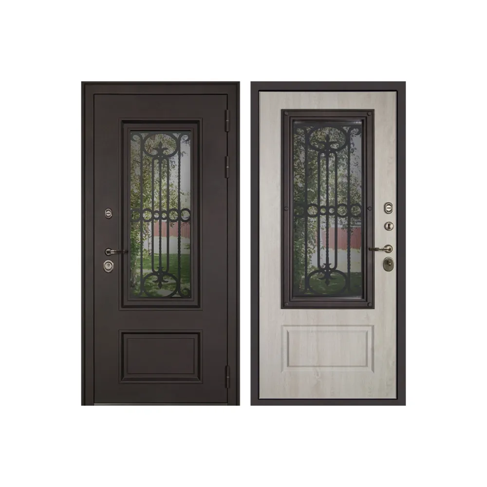Входная уличная дверь с терморазрывом АСД Аляска 3К с окном и лазерной резкой