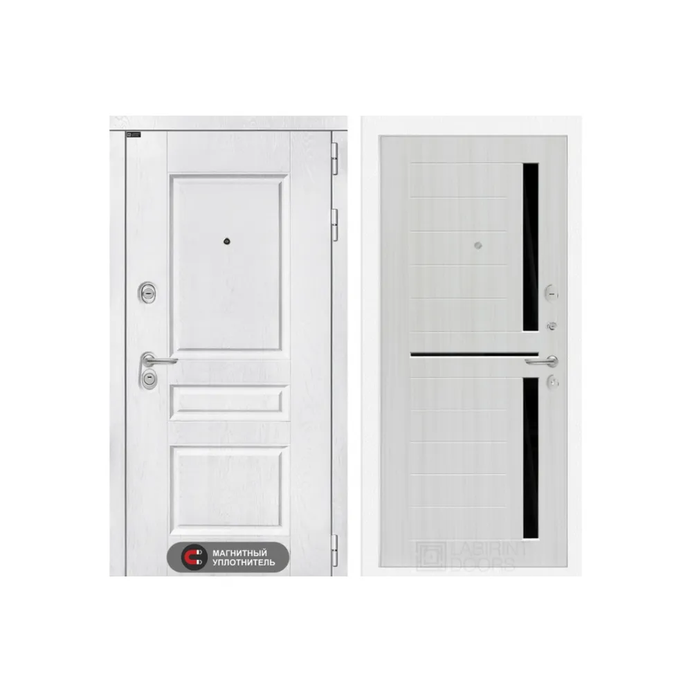 Входная металлическая дверь Лабиринт VERSAL 02 - Сандал белый, стекло черное